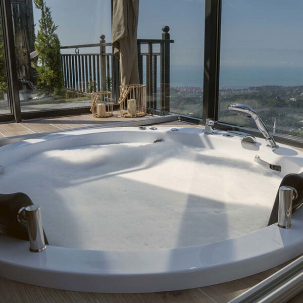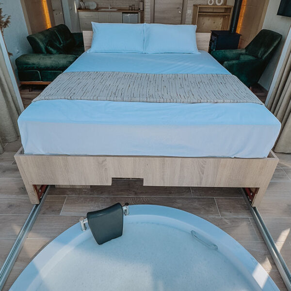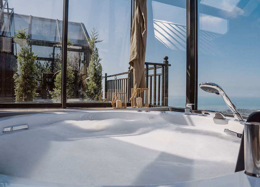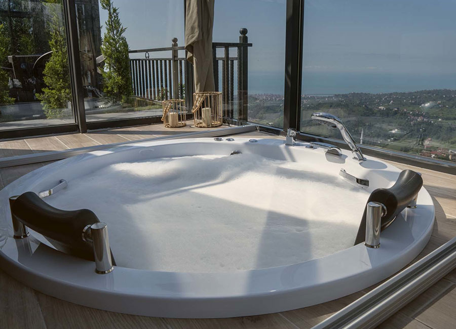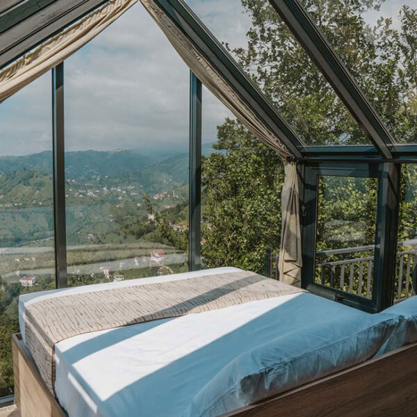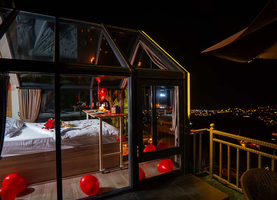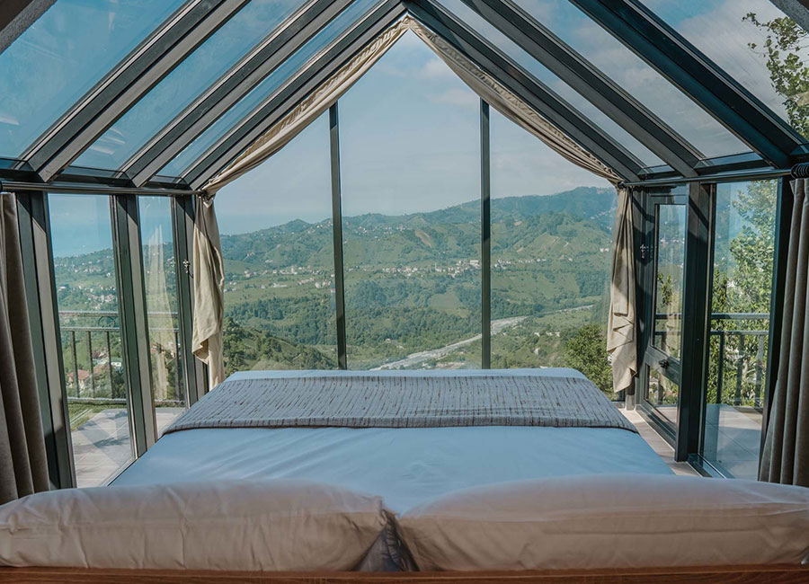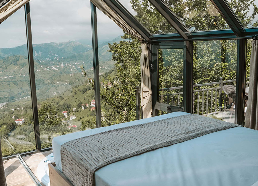 301 numaralı odamız, 45 metrekare genişliğinde olup, jakuziye açılan sürgülü yatağı ve cam tavanıyla eşsiz bir konfor sunmaktadır. Odamızda klima, su ısıtıcı, şömine, jakuzi, bir çift kişilik yatak, bir koltuk ve berjer, banyo, mutfak ve teras bulunmaktadır. Perdeler ve örtüler ile pamuk nevresim takımları, bölgenin doğal ruhunu yansıtan ahşap detaylarla estetik, kaliteli ve kullanışlı bir şekilde tasarlanmıştır. Kaçkar Dağları, Fırtına Vadisi ve Karadeniz manzarasını gözler önüne seren bu oda, deniz manzarası eşliğinde huzur dolu bir deneyim için sizi bekliyor.